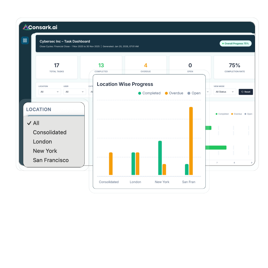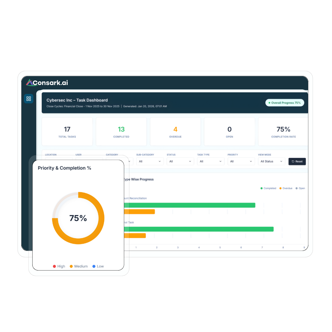 Consark Intelligence prepares, structures and executes close tasks aligning with your ERP,