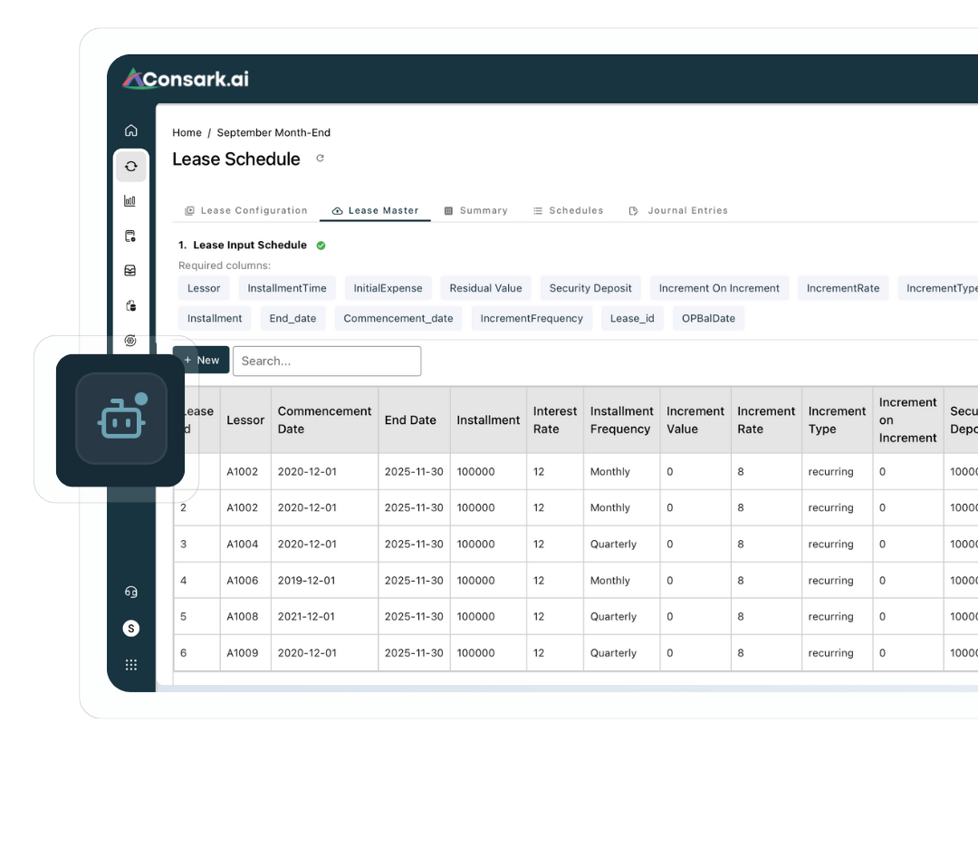 • Generate lease schedules from source agreements