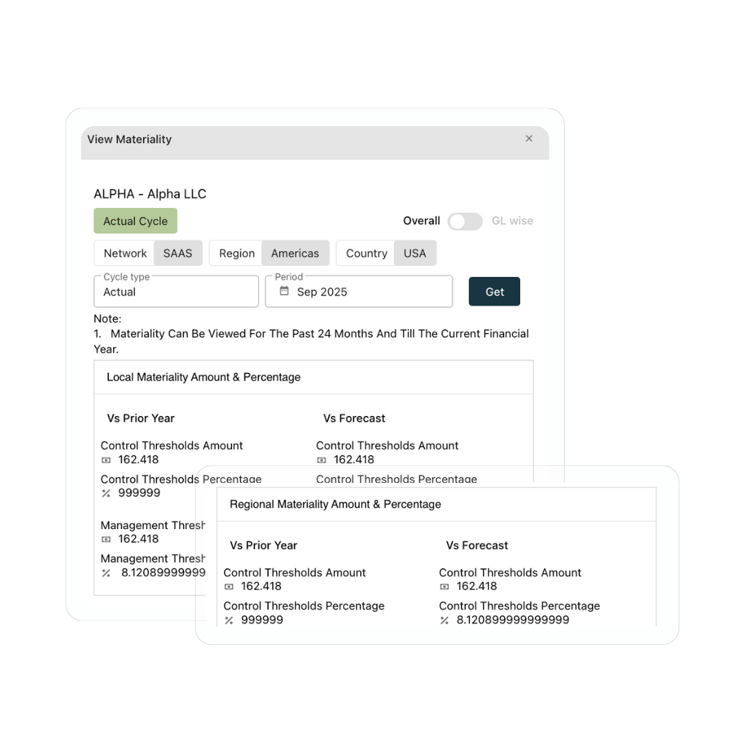 Set thresholds at the GL, entity, or org level. AI Preparers use them to guide what’s surfaced and what stays silent. Attention goes exactly where it’s needed.